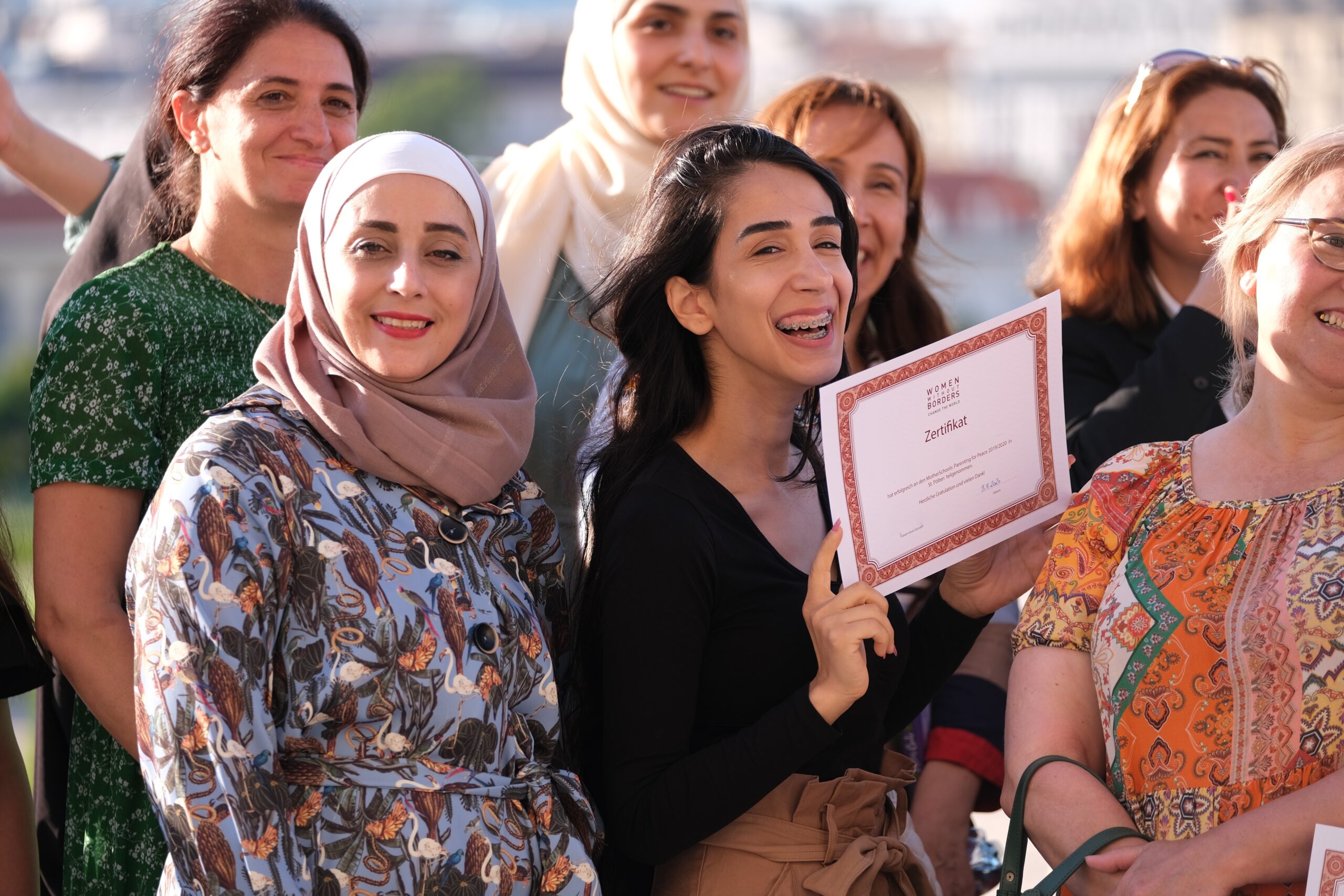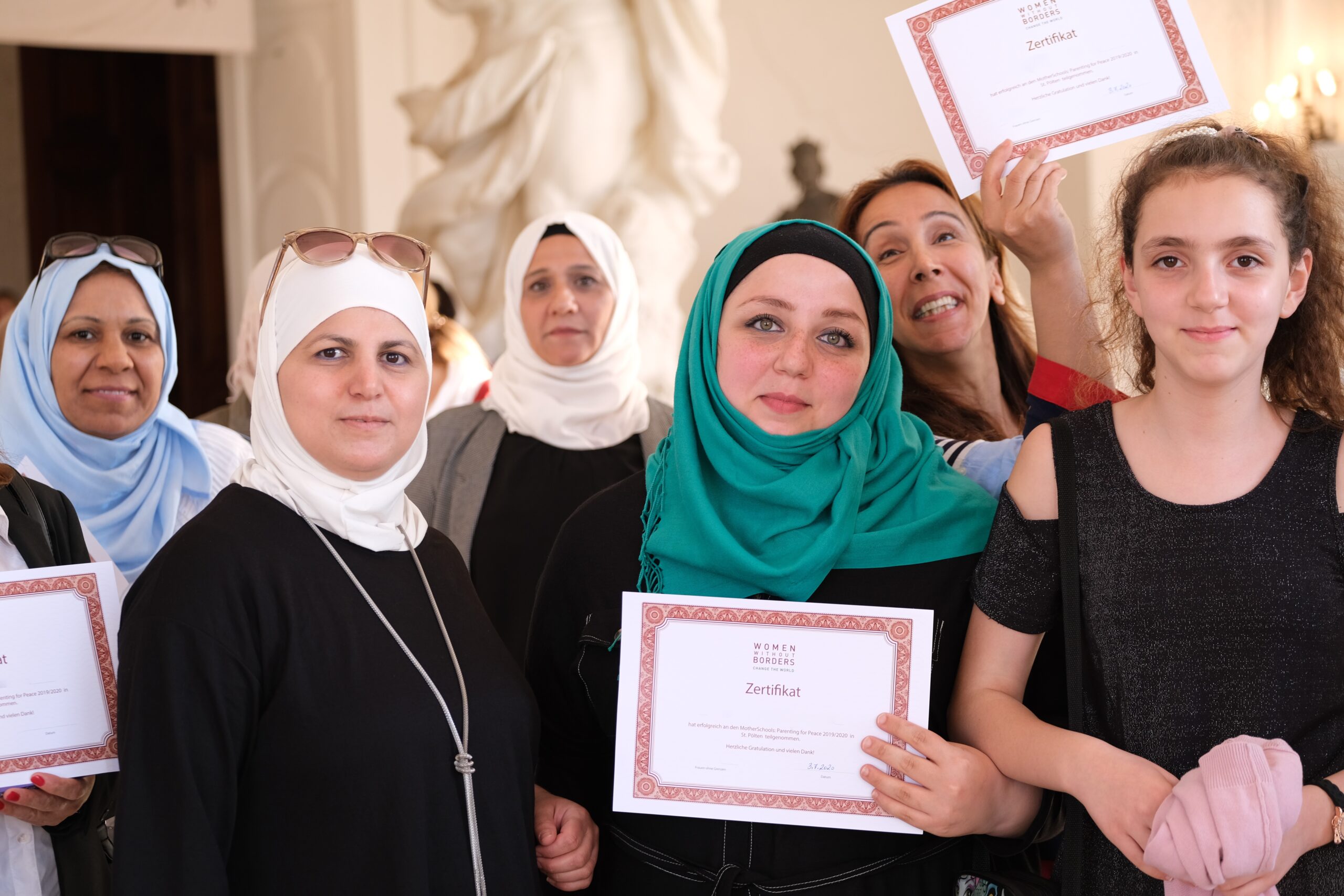 On 3 July 2020, a new generation of Austrian Women without Borders MotherSchools participants from the Vienna and St. Pölten groups join the graduation ceremony at the Belvedere in Vienna. The Styrian MotherSchools group graduates a day prior in Graz. The class of 2020 includes participants from Syria, Iraq, Chechnya, Romania, Italy, Armenia, and Afghanistan. MotherSchools Parenting for Peace in Austria programmes have been running since 2015.